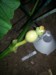 Photo correction to above.....heres another seed germed.....cots came up split and laying on the ground....pushing up a small first true leaf...the pathetic start to a good plant? Or fire up another.....this one took a long time to germ and a long time to push soil.....