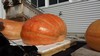 the bright orange one is my aunt debs pumpkin grown off her 1626 D.Gantner 14.... she crossed it with marks seed... should be hot... we are going to run a seed test on this pumpkin to see if it has mosaic or poty virus present in the seeds.... she won the howard dill award in Nekoosa this year with this pumpkin..... oh yes the other pumpkin... well that one was grown by the martins... oh yes that's a 2000 pounder...lol...