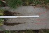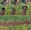 Step 4: Basically, this step goes hand in hand with step 3, but here I make it a bit more visible for you. As soon as I take such a 45 deg shingle out of the soil, from below the rim of the previous row, the rim collapses (and thus the greenery of the previous shingle, which is somewhere in this area, falls to a deeper level). For better visualization I have marked a shingle of the previous row with a green stake. So, I insert the spade at an angle of 45 deg (pics 1 and 2), and in pic 3 you can see the spade with the removed shingle as well as the collapsed rim of the previous row. Pic 4 gives you an impression that the 'mound', which results from that turning procedure, consists of the deeper part of the extracted and turned shingle (where there has not been any greenery, it was extracted from the lower soil areas below the previously turned row), and the upper part of the shingle (which contains the greenery) forms the rim of the current row, which will collapse and fall to a deeper level during the procedure of turning the next row of shingles.