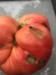 I forgot to post a picture of my soil tomato. Fighting off signs of early BER. Notice the brown spots. Spraying the fruit 3 times a day with RotStop. It appears to be turning the corner. This is at least an 8 fused. I havent topped this plant. I am going to pull the other delicious that is tossing singles with a few doubles and start a replacement Brutus Magnum. Still have the rest of winter to try to make my cross.