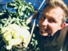selfie with the cherry tomato. The planter it is growing in has TONS of wood ash in it.