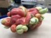 To the left of the tomato is a gourd painted to look like a Dr. Seuss fish or something. When I saw it at the gallery I had to have it. Best $300 I ever spent. lol!