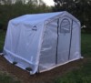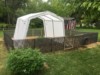Here is a view of the greenhouse I have set up. Reviews were mixed about material durability and life expectancy. For the price point of $200 from Tractor Supply it made good sense and fits my needs nicely. Shelter Logic 10x10. I will keep it as is until near the end of this month. At that point I will likely remove the cover leaving the frame in place for the season. So far it has handled some very strong winds and protected my plants from two late frosts. Photograph taken 5-8-18 around dusk.