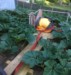 Back in town and what do I see? A pumpkin plant much bigger than me. I was pleased to see her trucking along in my absence with my watering timer doing its job.
