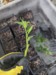 We have baby tomato plants. The first two out of the dirt are Dan's 9.44 cross and LaRue 5.08. I think they are a day or two behind because I was not watering them enough.