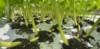 I will burn holes with a torch in fabric for each leaf node as plant grows, and stake each one with landscape stakes. No burying of any vines! Only bottom roots will touch soil! My patch has very high winds which could break vines that are only staked down and not buried.