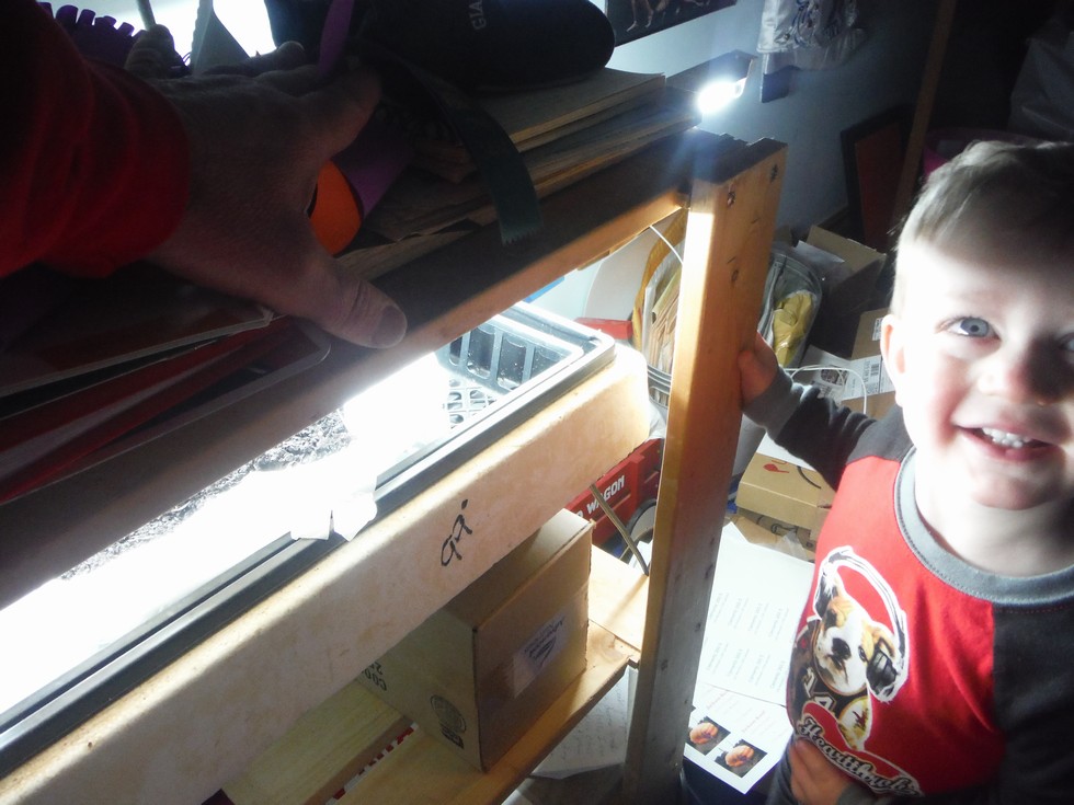 Jacksons first encounter with seedlings.Now to train him to fill member packs.lol