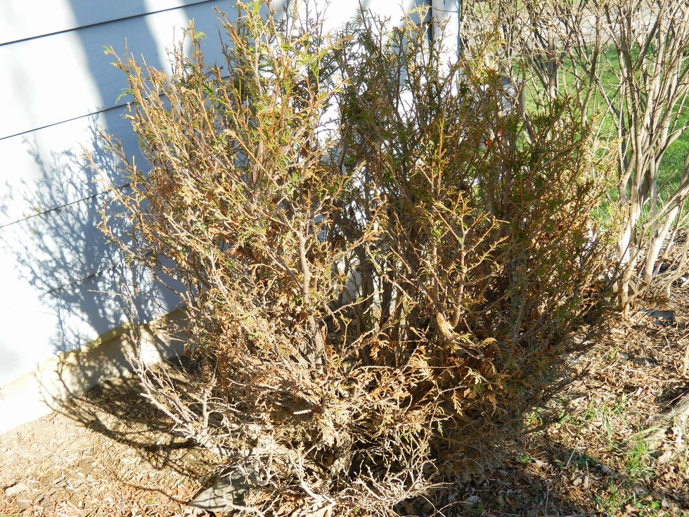 This is what the deer left out of one of our globe arborvitae bushes. 2 more are this bad or worse. They even came right up by the windows when I was sitting in my chair less than 3' away. They can do in a pumpkin patch in a hurry.