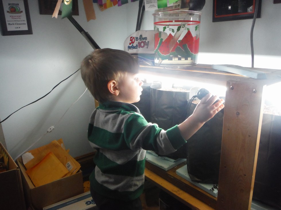 Living dangerously letting Jackson near the watermelon seedlings seedlings.