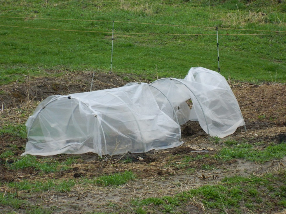 Rain, wind, and rain. We had 1.4" a few days ago. Then Saturday it blew hard all day. Sunday the wind got worse and just before 5PM the big storm hit. There was a tornado on the ground a few miles away and heading towards us, but it lifted up before it got here. But it still did some minor damage to the hoop houses. Luckily the hoops were just warming the soil and didn't have any pumpkins in them yet. So I can fix the damage and beef them up before I plant. I checked the rain gauge this morning and found 1.7". That makes a total of 9" in the past 16 days, and it is still raining. Forecast is for rain the next several days with high temps only reaching the 50's to low 60's. I need it to warm up because the pumpkins, watermelons and gourds are all sprouting.
