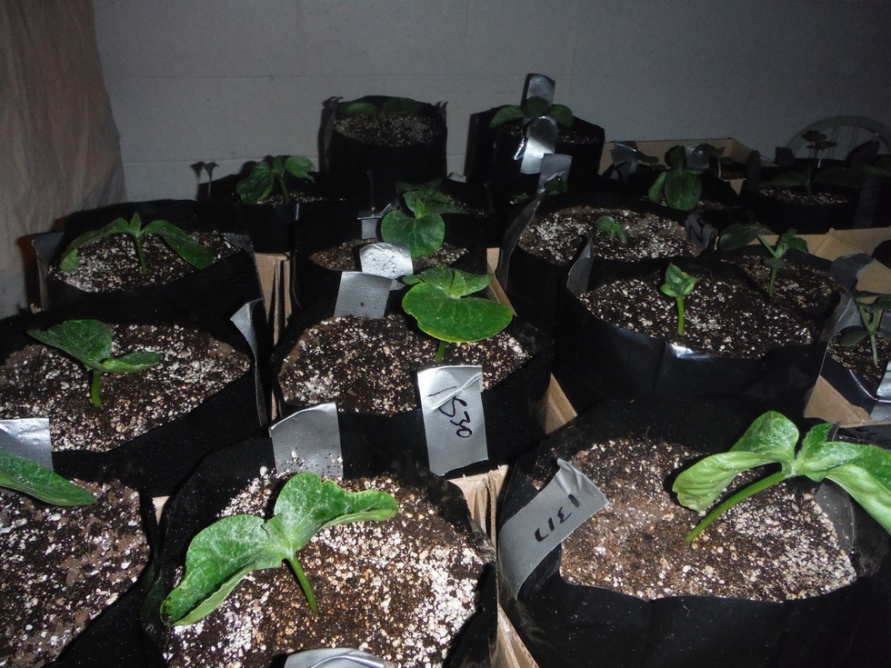 Plants growing slow in the basement 64 degrees at night.Plus I may have gone a little heavy on the water.So I increased the heat placing a heater under table & hanging a drop cloth from ceiling to try & contain heat from the Melon Head hood.Was about 72 today at plant height.small fan going will lets plants dry out a little.Foliar fed them B-52 & F-1.2 inches of rain last night.so weekend planting not looking good.Maybe a Tuesday planting at best.No worries,No hurries.The plants are better off in pots then in cool cloudy Mud.