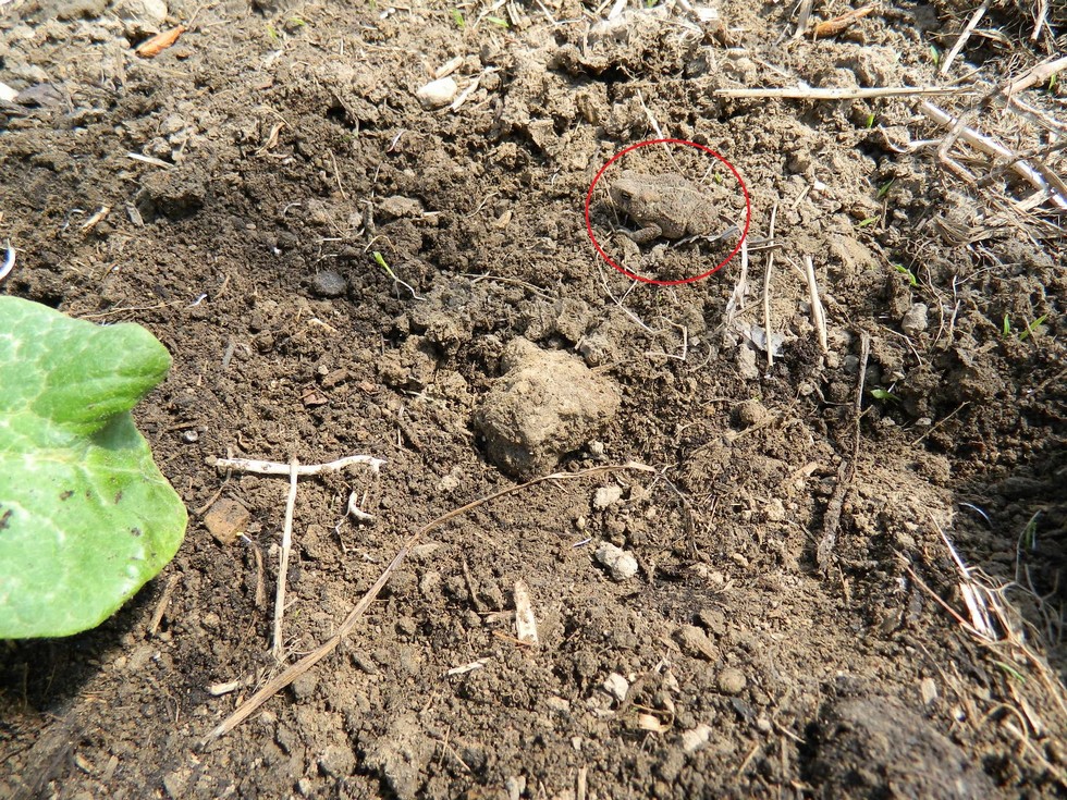 I almost squished this little bug eater when setting the first pumpkin. He really blends in with the soil. The last 2 years I have had a lot of toads and leopard frogs in the patch, and the bug pressure has not been too bad.