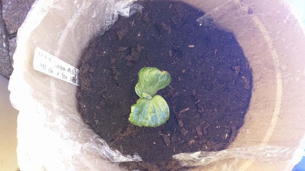 my 1059 v/m. having trouble with this one. It's been abnormally slow compared to the others. It was started the same day as the 754 and 334. Took forever to Germ and when it finally did the cot leaves where deformed (almost looked burned on the ends). Within a day of giving it some help it popped up and started to look better. It has been under a grow light and I put it outside for a few hours in the sun for the past 2 days (to hopefully give it some help). It really has not grown much, cot leaves have been the same size for 2 or 3 days now. It has a tiny true leaf in the middle but it's looked the same now. It's green and it seems to be doing "ok" (hey, its alive!!) but not sure what it's issues are? Any ideas??