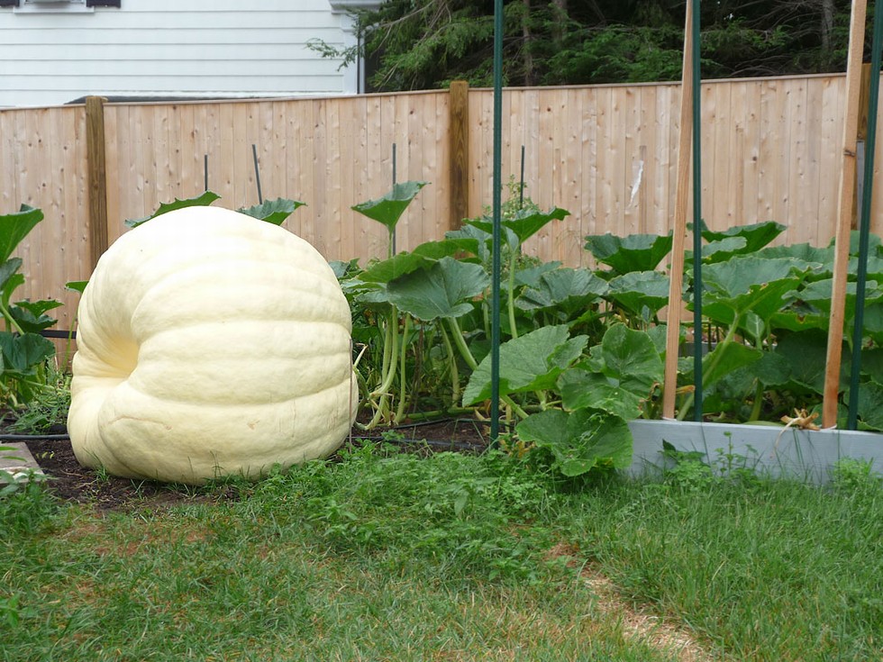 In 2013 I grew a 1753 Bryson in a small 150 SF patch. Really ended up liking this plant and would like to grow it again. It was estimated at 504 lbs. Very nice shape probably comes from the 1647 Wallace and pretty cream colored. Nicely ribbed. I want to try this one again.