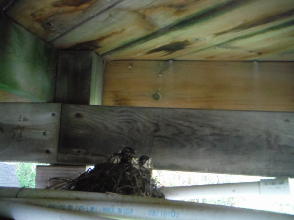 Robins under the deck,about ready to fly.1/2 rain yesterday.Foliar feeding this am with sensigrow B-52 & F-1 Plants looking good.