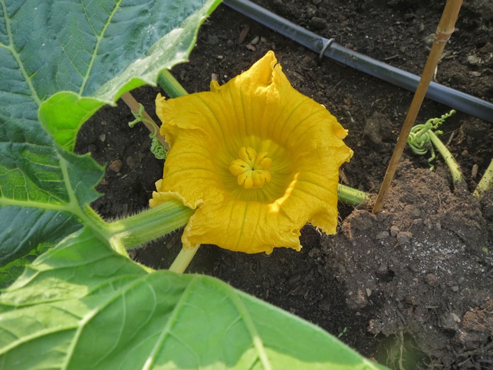 1530.5. Just what we want to see on pollination morning. Nice colorful symmetrical female at 10 ft. open before I have to go to work. But the males weren't up for the challenge. Two sorry looking males, one from yesterday and a deformed one from today. Selfed. But I will be surprised if this one takes.