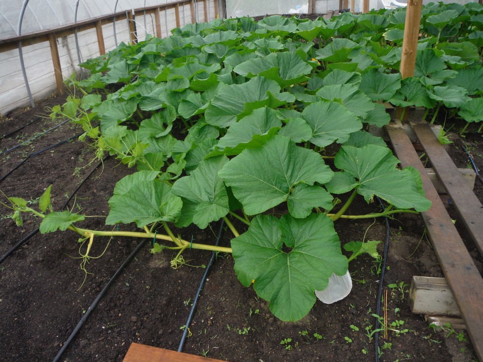Heres the plant this is the one I planted on video 2,small plant when planted.cross is F2009Wallace X M1067Kent.It was in the high 60s this am & cloudy flower fully open at 70 degrees.plant 14 foot long & 16 feet wide.Fruit at 10 feet out on mv