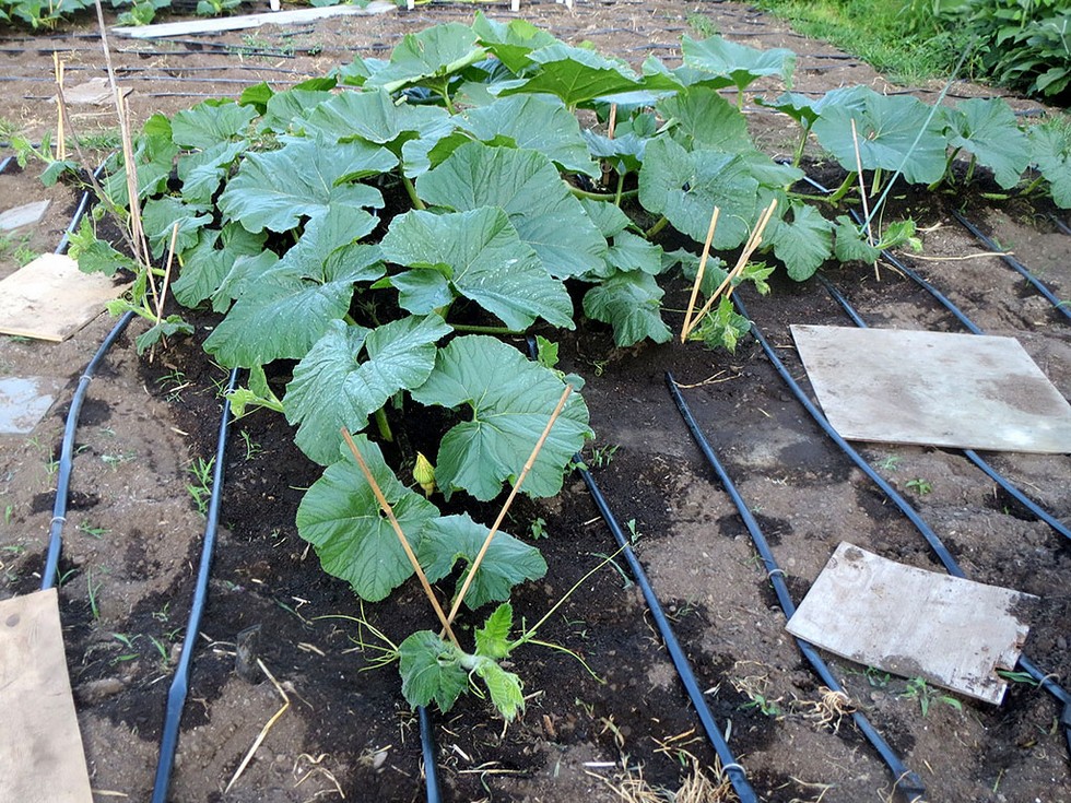 2009 Wallace in a growth spurt now. Moving quickly after a sluggish beginning. You can see the first female on the main vine at 8 feet which will open tomorrow morning.