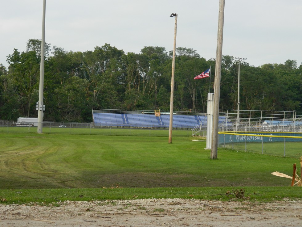 When the big windstorm hit I was afraid it would wipe out the long gourd trellises. In town, they didn't fare as well. The Anamosa football stadium used to have a nice press box at the top of the stands. And there used to be a lot more trees behind the stadium and they were all standing up straight.