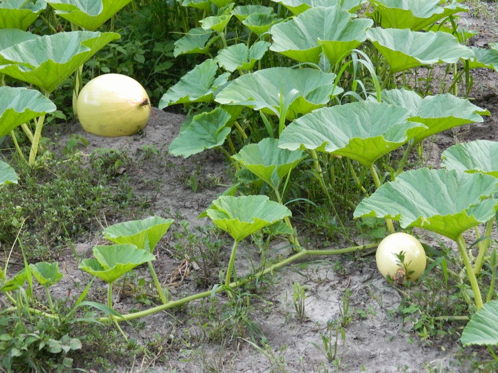 2 pumpkins on Submarine. The plant is smaller than Survivor, but the parent 553's plant was smaller with small leaves. I buried more vines with my "trench mix" and watered in some blood meal. I also sprinkled garlic powder and root drenched Merit yesterday. Tomorrow after spraying glyphosate on deer plots I will clean the sprayer and apply some bifenthrin. Gourds will get foliar feed.