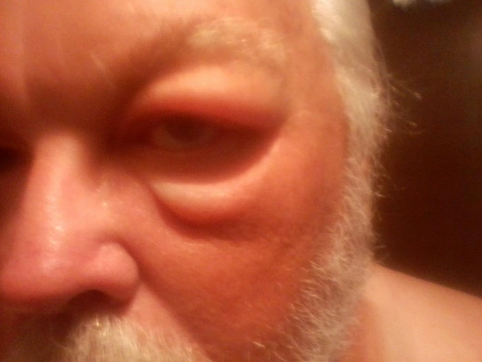 Dang deer fly! I was working in the patch this morning when one of those evil, venomous, flying demons bit me above my eye. (I don't look like this all the time) It isn't painful, it just feels weird and makes my eye water. The swelling will likely be gone by tomorrow afternoon. You would think that I would remember the insect repellant as this happens every year. Anyway the patch is looking good, but we need rain. I'm going to have to set up temporary electric fence around the long gourds because a couple are getting close to the ground and I don't want any critters chewing on them. I'm brewing batches of worm casting tea to try to activate the soil. Submarine got the first shot as it is needing the most help. I keep giving it real low doses of Miracle Grow in warm water to try to green it up without aborting the fruit. So far it seems to be working.