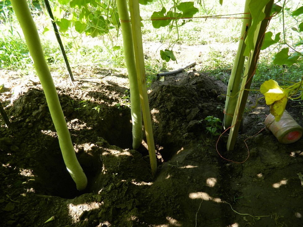 3 gourds on the 115.1e Wright growing into holes. The one on the right is close to 10', the one in the middle id around 9' and growing faster. The one on the left is set lower on the trellis and may need to be grown on a slant board soon. I will keep it hanging as long as possible.