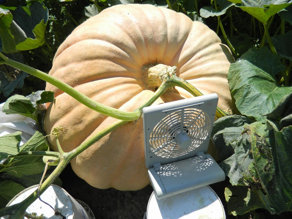 Survivor cleaned up and drying out. I have never had one grow like this before. The stem and blossom were once parallel to the ground, but the blossom turned down and the stem turned up. It makes it hard to get consistent measurements. As near as I can tell. growth is down to 7#$ a day. Maybe it is in the measurements, maybe it is good to prevent more splitting, or maybe it is a sign that the end is near. But if it keeps this pace up until the weigh off and does a few pounds heavy it could be a personal best. It does thump very solid.