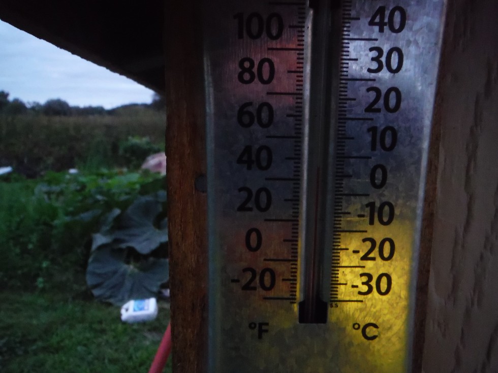 46 degrees this am the next few nights shoud be 5 dergrees warmer with sunshine 70s forecasted by mid week,which is not the norm.