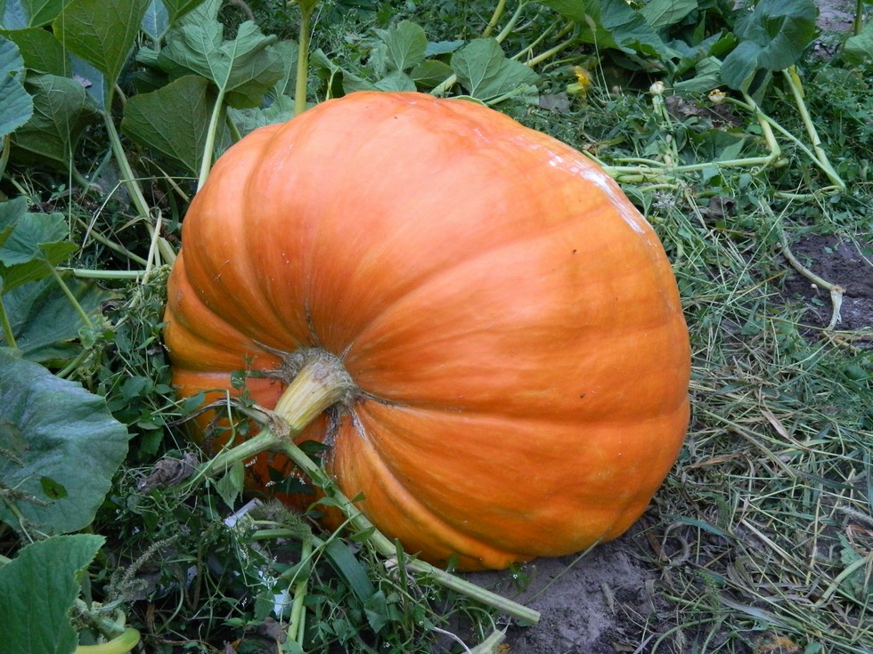 It is supposed to rain tomorrow and maybe on Friday, and Jacob's Submarine pumpkin needs to be hauled out in the 2WD Ranger. We have a steep, grassy hill to climb and it gets tough if it is wet. It isn't going to be a competitive size, but it sure is orange and looks good from the stem end. So we hauled the tripod down to the patch, got out the hoist, straps and pallet went to the patch,
