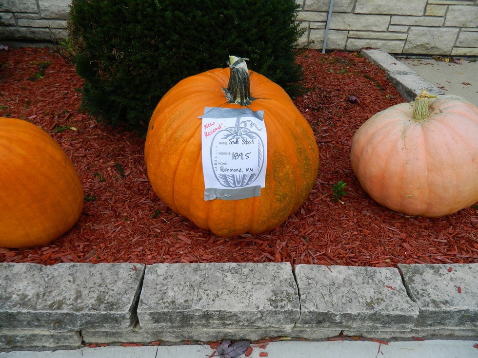 The largest field pumpkin I have ever seen. Scott Steil repeated as winner of both pumpkin categories.