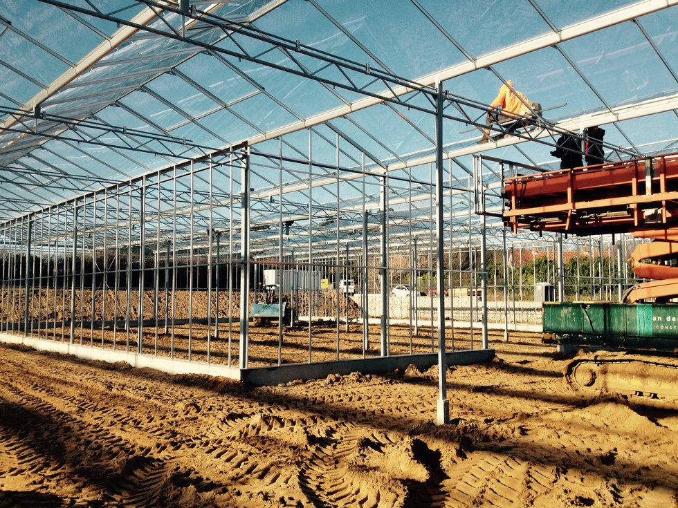 The glass is in the roof and they are working on the sides on the Pumpkin house. We want to put in 50cm of growing media and the bulk of it will come from the first glasshouse that's coming down. As we used to grow cut flowers in the ground,the soil is very good but we will still need to put in a lot of peat to get it where we would like it. We have been looking for a very young peat that really aerates the soil and we will take that one step further by using "peat fractions". Basically most peat is just shredded in the field and then hovered up. To make peat fractions they cut the peat into blocks and dry them before gently braking them up. They then grade them and we want the coarsest one to keep the soil structure as open as possible.