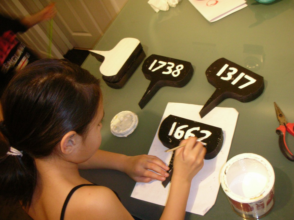 Sophiana is finishing off some patch signs for for each of the plants. The Mrs thinks these will look more at home is a cemetry.