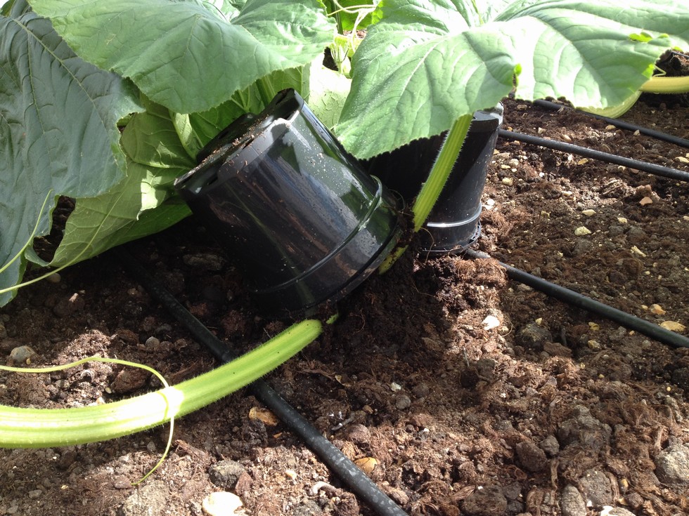 So we have a load of pots with peat that is totally soaked. We sprinkle our "stuff" over the top and simply turn over a pot on every joint. We are going to leave the pot on for a while to keep the moisture on the node. This is of coarse top secret so please don't tell anyone.