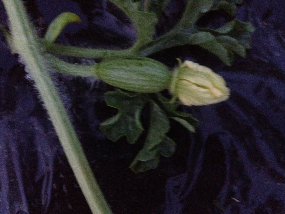 Miscalculated when this female would be ready for pollination. It opened the day before I thought it would. I guess open pollinated is better than not pollinated. This is on the 253 Mudd plant. Plant is only about 50 sq ft but I'm going to let it grow for now cause this is the longest melon @ pollination I've ever seen. Right at 1.2 inches long.