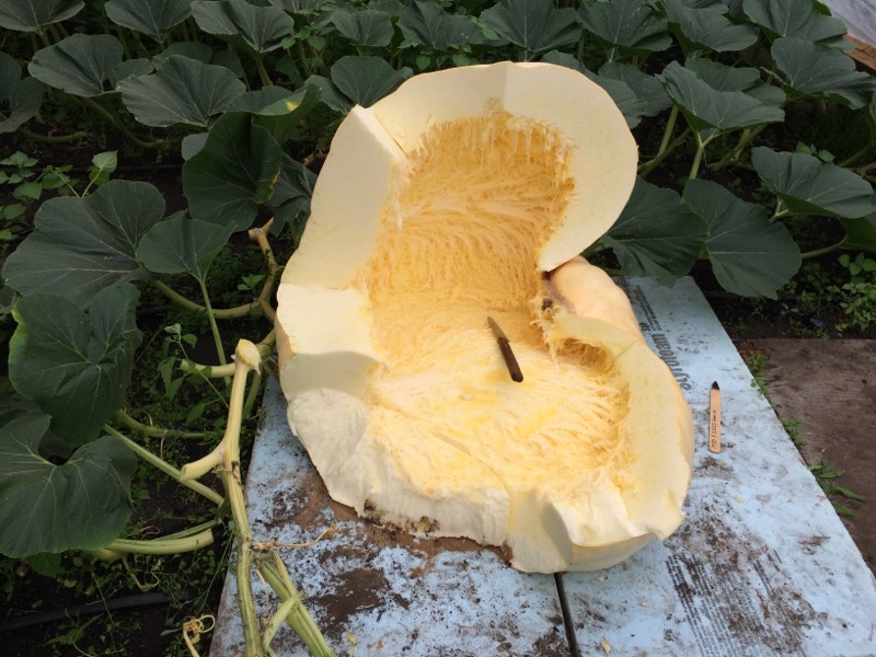 #1070Crews autopsy pic. The day 16 split was just held together by a thread. I should have cut it off immediately after the split. Most of the time when you have a fruit growing well it stops all further flowers from setting fruit. That what happened to me. Probably would have been able set another fruit had it been removed.
