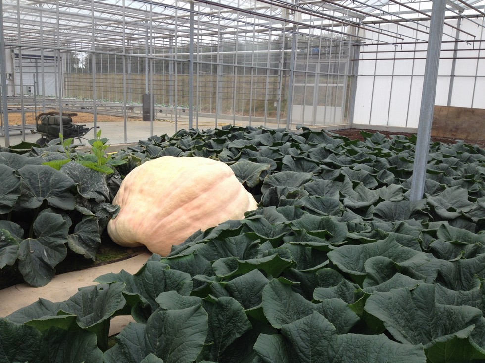 Another week on and we still have a couple of pumpkins left. We didn't get round to pulling up the 1985 this week so we decided to tape her and DAP 73 she is 1745lbs up 104lbs for the week and that will be her est weight. Like I said last week she would have probably ended up tapping around 1950lbs or more. The 2102 is still slowly growing and on DAP 71 is 1381lbs up 85lbs for the week. DAP 72 the 2323 got too 1588lbs up 104lbs for the week and thumps like a rock. I do get the thumping of pumpkins thing but last year we were 100% sure that the 1623 was going to go light and you all know what it did. I was talking to Mehdi last week about Mildew as he got it in his patch a month earlier this year and we were the same. It's a pity we don't have the amazing forecasting that they have in the USA. This is the 2323 which has very little mildew and still a cracking plant.