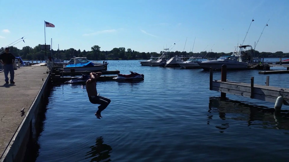 Me and Tanner Conway had a bet leading up to the weigh off,,if the 1625 went under 27% I'd buy ferts for him next year, but if it went over 27% heavy he'd have to jump in lake michigan... This is Tanner just before he gets soaked.