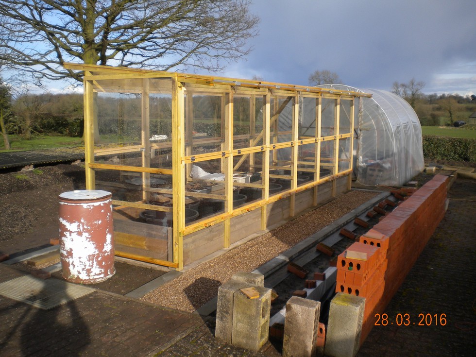 Finally finished building my new growing frame, it holds 10 130litre black pots. Still have these to fill. Both front and rear frame windows can be opened or completely removed during hot weather, so hope it works.