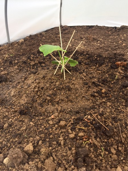 Got out today and pit a few things in the ground. Here is the 1522 Terry settled into its hoop home. I believe this seed will grow a big pretty orange pumpkin.