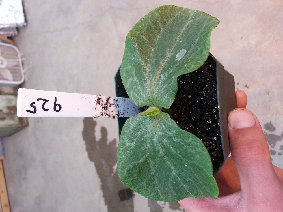 Here is one of the 925's that came from the pumpkin I grew last year. It looks like this one could be the plant for my third and final plant that I will be growing this year.