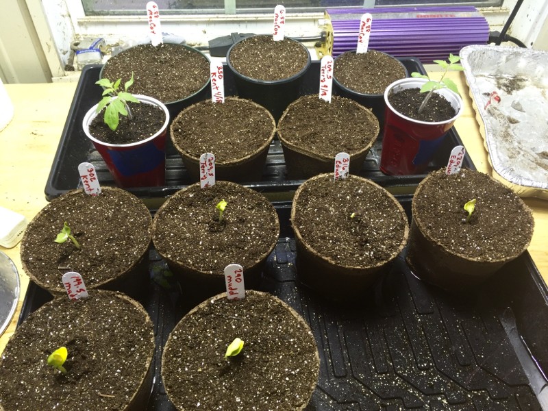 Melons are up pictured in the front tray. Back tray has 2 nice 7.05 Porkchops, and 3 - 6.88 MacCoys just now humpbacking thru the dirt. 350 Kent has yet to move, hopefully it will soon.
