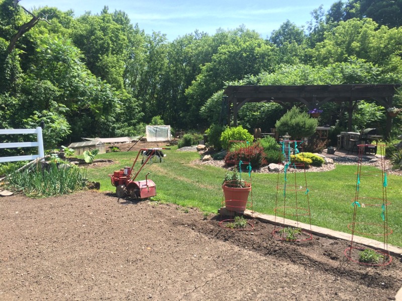 Another beautiful ,sunny, blue sky, hot, sweltering,sweaty, wilting miserable day in the porkchop patch..the former compost/dump area there in the background will now be known as "The Thunderdome"...