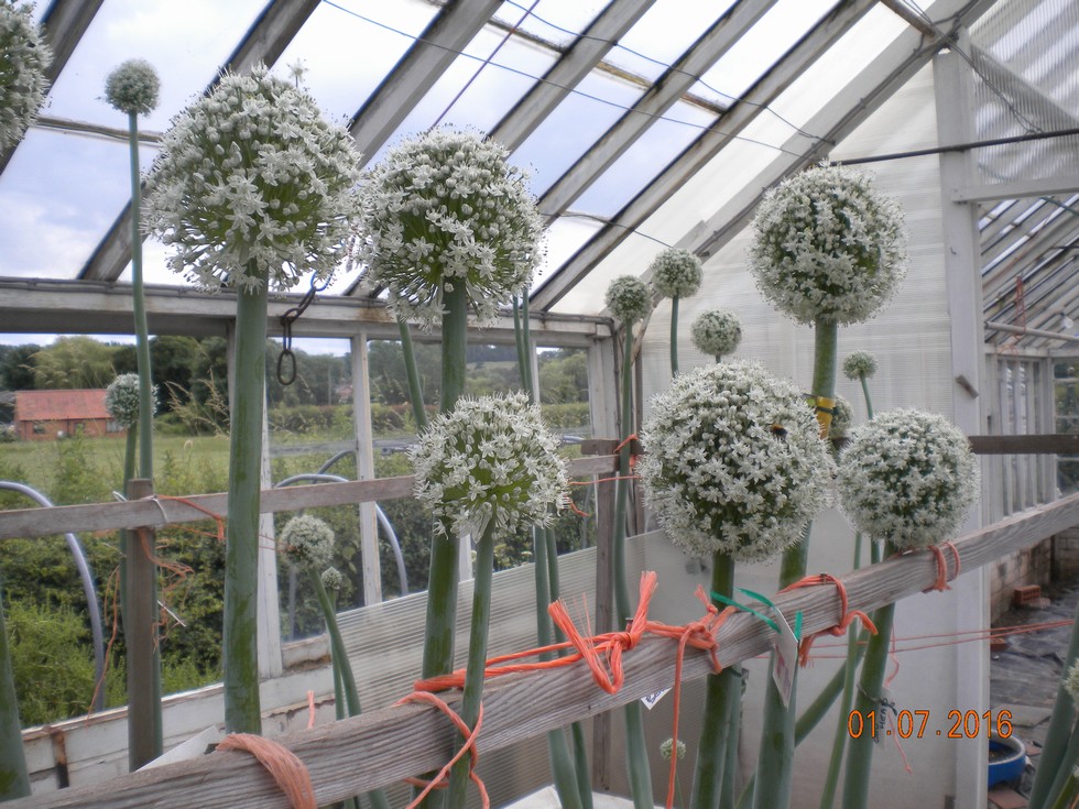 Large Onions put back for seed now in full flower and a few early ones already set.
