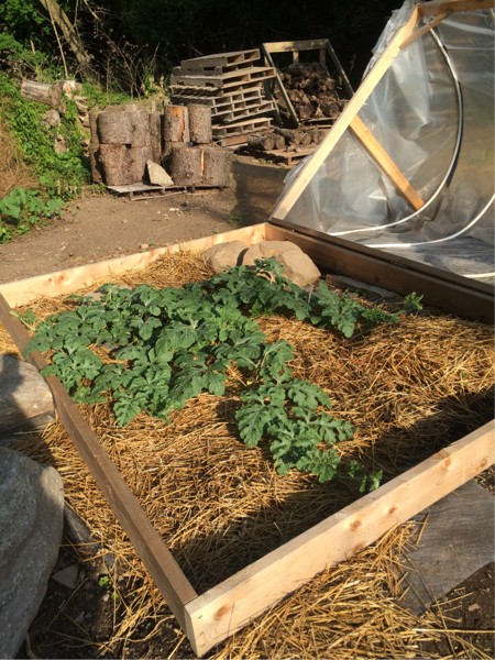 Beautiful color to the melon leaves... Prolly the wow packs and the dunkels soil fortifier I mixed in the planting hole". I call it my "tennesee mix"