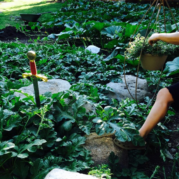 I had feelin the watermelon plant would like the big boulders to grow around...you know.. Like in Tennessee...it's proven..Help keep them warm at night ...(not that we've needed the help)...the leaves near the rocks are huge!!...this plant has been a set it and forget it for us... Love that you can weed fabric the growing area... Tickled pink here...more little ones showing up...