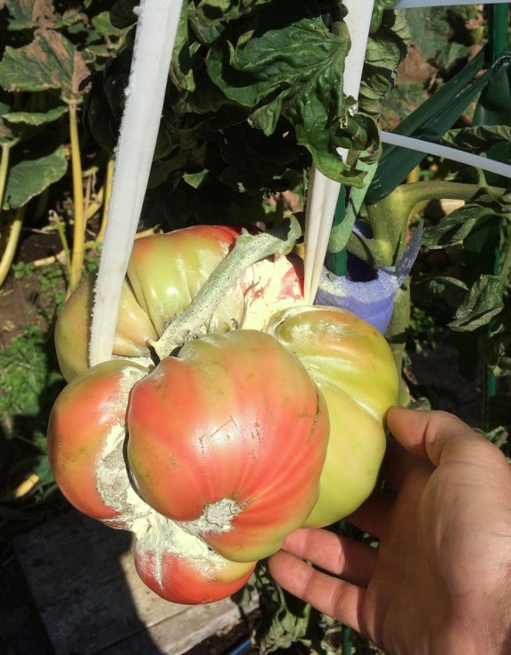 My 4.69 Spaziani still hanging on. Think it will make if for October 1 weigh off. Perfect timing for once. Measuring at 24.5" so the goal of 5 lbs still may be possible this year. The sulfur is just preventative and there are no soft spots at this point.
