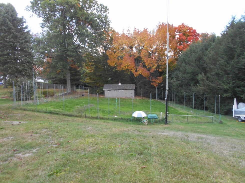 I have been keeping my overhead irrigation system running to allow time for the grass seed to establish and so far it has been growing well. I have gone through multiple times and removed some of the weed species (Pigweed, Galinsoga, Horseradish) and now that the grass is getting tall it will be receiving its first mowing. Luckily, this was timed with the soon to drop leaves so it can be a multiple purpose mowing.