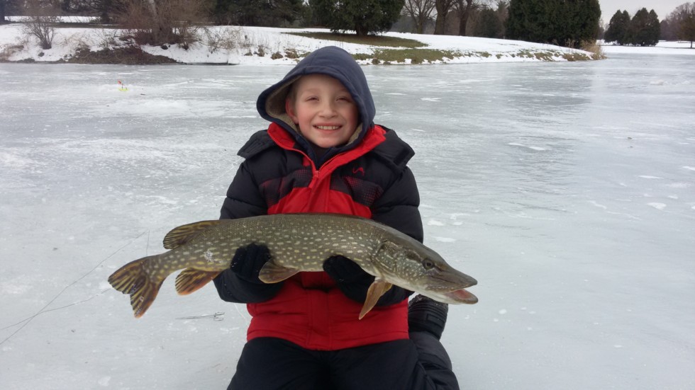 Couldn't ask for a better day, first fish my 9 yr old grandson pulled onto the ice
