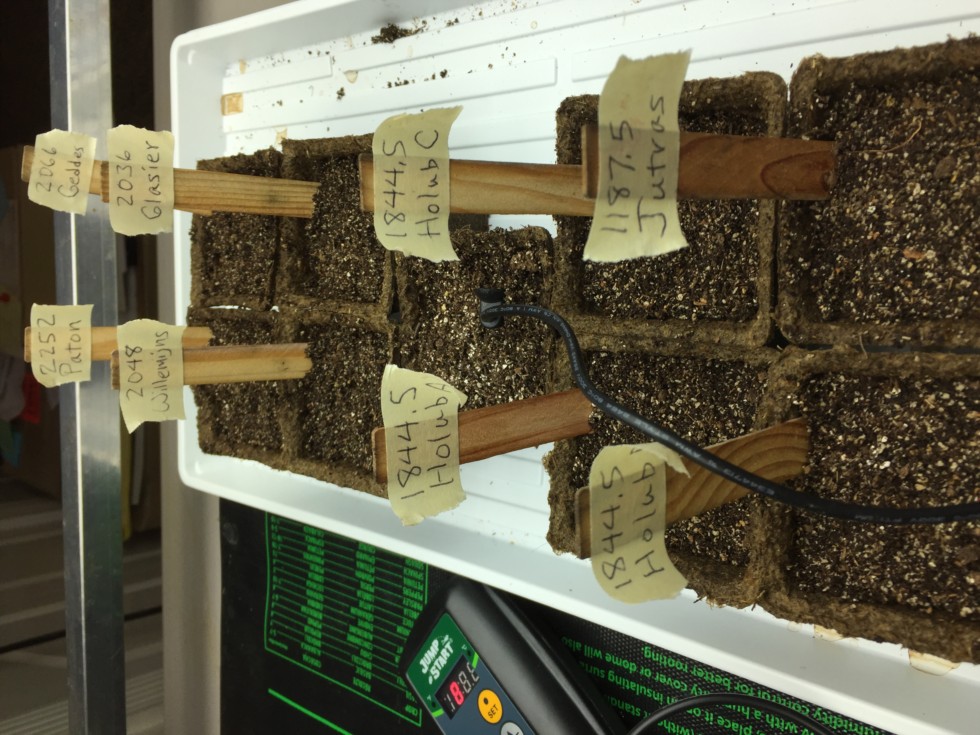I soaked my seeds for 4 hours in warm water with kelp, Essential and a little hydrogen peroxide. The thermostat is set on the heatmat for 85 degrees F. The seeds were coated with Azos and sown in 3" Cowpots with Mycorrhiza in the seed starting mix. Once the seeds pop, they will then be placed into 6" Cowpots. The roots grow amazingly fast. Usually by 10 days the roots are starting to breach the 6" Cowpots. I have done it this way to avoid damaging roots.