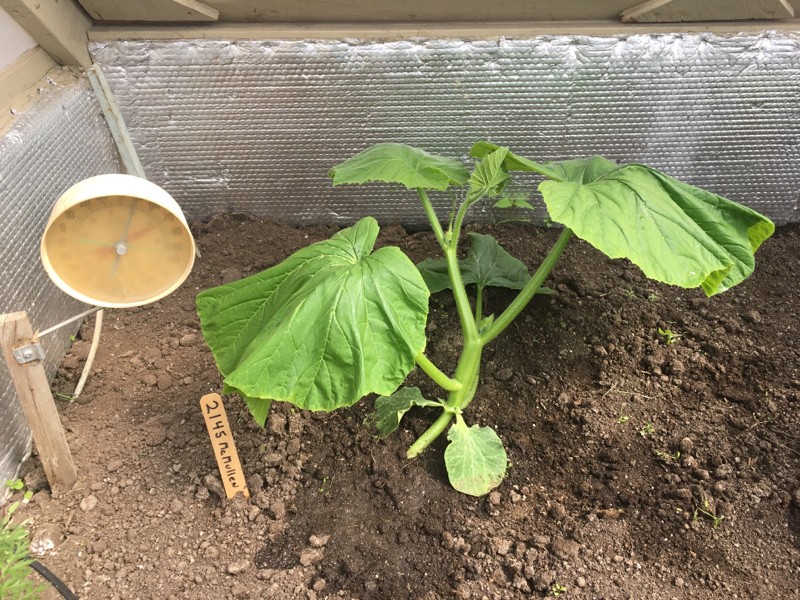 2145 McMullen. Not flopping because the 2nd true leaf is a kickstand. Going to bend the kickstand. Watered a bit in preparation for the stem to bend into the moist soil.